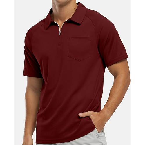 Per uomo Polo Polo con zip a un quarto Abbigliamento quotidiano Data Zip a un quarto Manica Corta Moda Essenziale Semplice Cerniera Tasca Estate Vestibilità regolare Vinaccia Nero Bianco Blu marino
