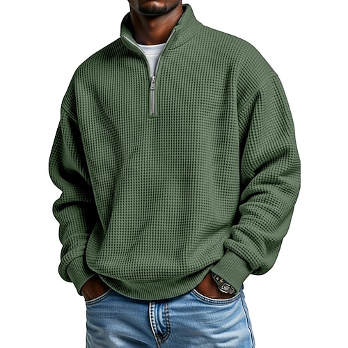 Per uomo Polo a nido d'ape Polo con zip a un quarto Giornaliero Per eventi Chiusura lampo quarto Manica lunga Di tendenza Moderno Liscio Tasche Primavera Autunno Standard Nero Bianco Blu marino