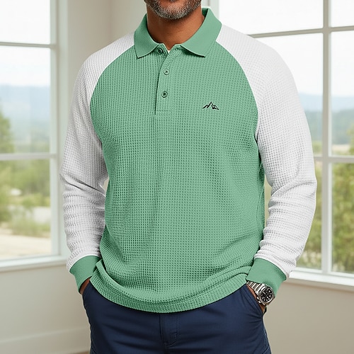 Per uomo Blocco di colori Magliette Polo a Nido d'Ape Manica Lunga Magliette polo Camicie con Colletto Business Casual Affari Abbigliamento da lavoro Abbigliamento quotidiano Bottoni Primavera