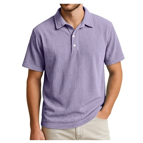 Per uomo Polo Camicia di Velluto a Coste Vacanza Streetwear Zip a un quarto Manica Corta Moda Essenziale Semplice Estate Vestibilità su misura Viola Nero Bianco Vino Blu marino Azzurro cielo Polo