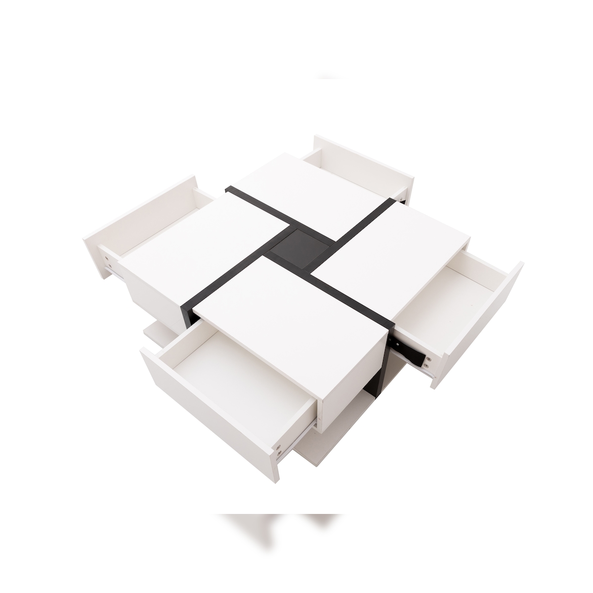 OKWISH Quadratischer Hochglanz-Couchtisch mit Schubladen, Ablagefach, modernes Design, künstlerisches Muster, 78x78x36 cm, Weiß-Schwarz