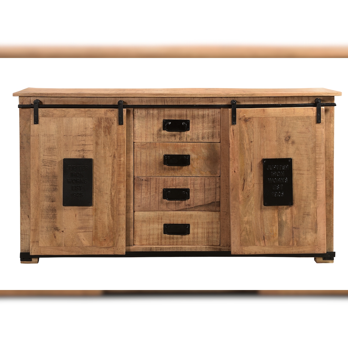SIT Möbel Sideboard | 2 Schiebetüren | 4 Schubladen | Mango | Serie NAMUR | B 150 x T 38 x H 81 cm | natur mit antikschwarzen Beschlägen