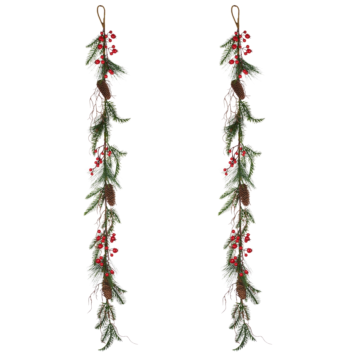 CREATIV green künstliche Pflanze Tannenmixgirlande mit Naturzapfen und Beeren, 136cm, rot, 2er Set
