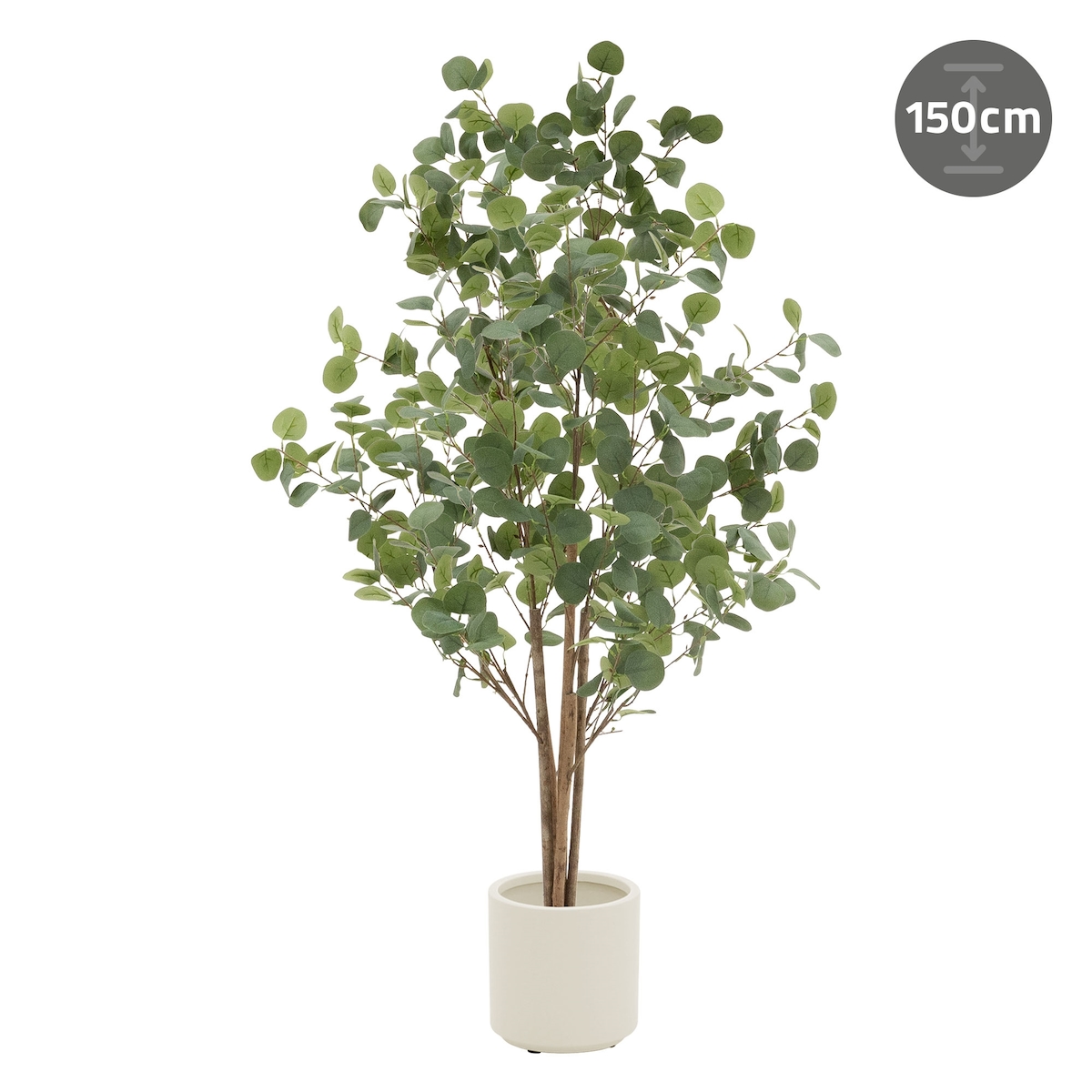 ML-Design – Künstlicher Eukalyptus – 150 cm | Naturholzstamm, im Topf, Kunstbaum wie echt für Wohnzimmer & Büro