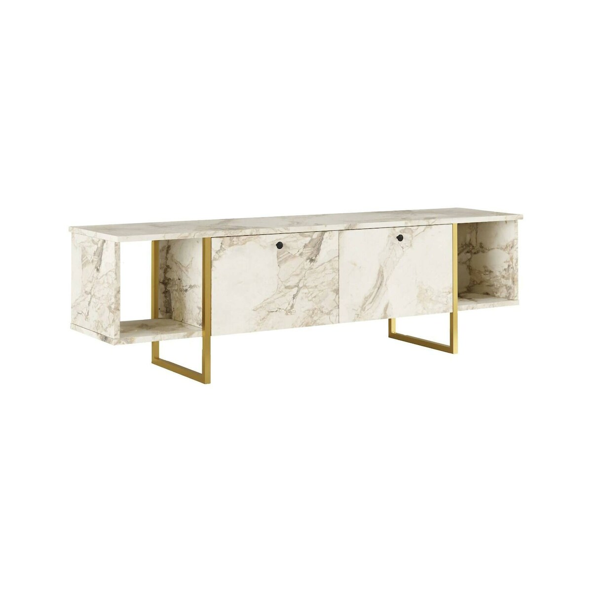 Dmora Fernsehschrank Dflorian, Ständer für Wohnzimmerfernseher, Niedriges Wohnzimmer-Sideboard, TV-Ständerbasis, 160x40h48 cm, Weiß und Gold