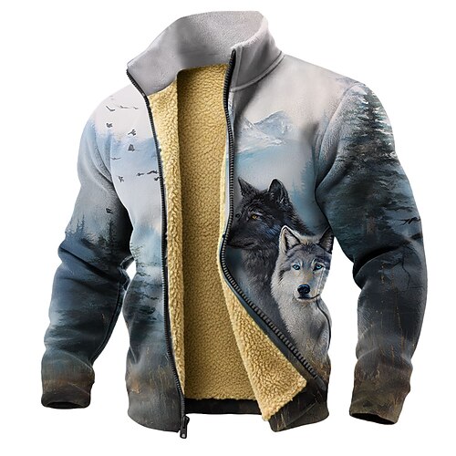 Per uomo Lupo Stampa 3D Pile Felpa Quotidiano Casual Fantasia Girocollo Casa Feste Regalo Abbigliamento casual alla moda Blu 1 Blu 2# Marrone Stampa 3D Autunno Inverno progettista S M L XL XXL XXXL