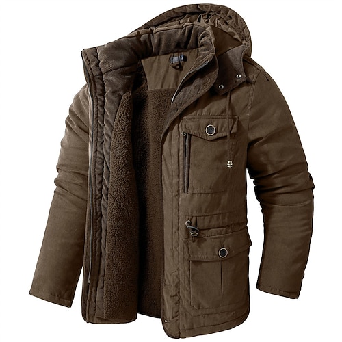 Per uomo Mimetico Pile Felpa con Cappuccio Giacca di pelle Felpa Moda Cool Quotidiano Vintage Retrò Con Cappuccio All'aperto Regalo Caccia Blu Nero Marrone Verde Cerniera Tasca Autunno Inverno