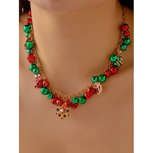collana con ciondolo natalizio da donna, gioielli con catena pendente festiva con pupazzo di neve, renna e campanelle natalizie, graziosi accessori natalizi per feste e regali