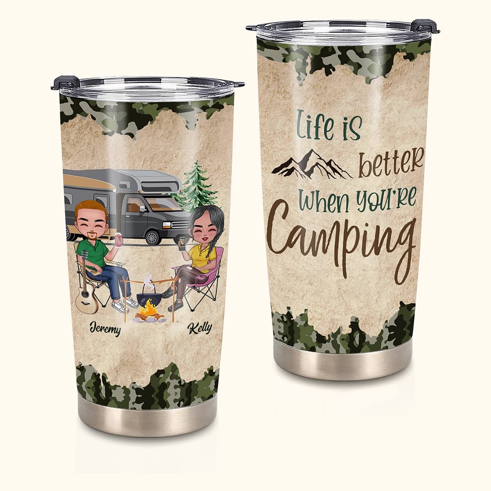Vaso de 20oz Personalizado When You are Camping with Your Couple Life Is Better Bebidas frías y calientes Regalo de cumpleaños Regalo de San Valentín