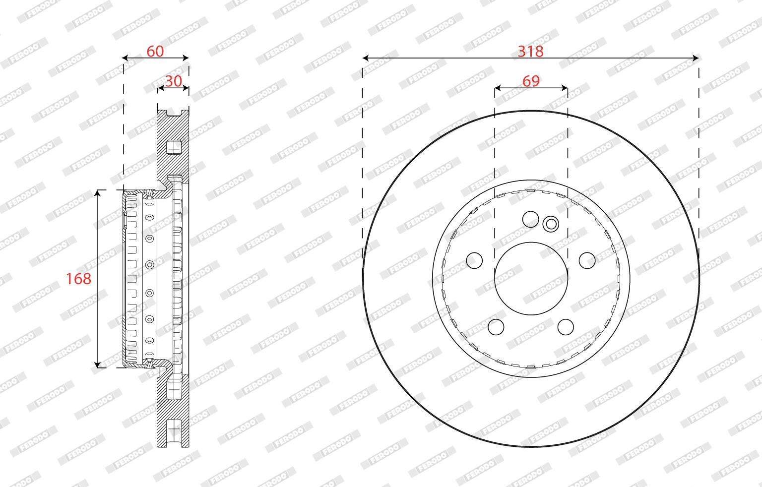 FERODO Bremsscheibe DDF2834VC-1 vorne rechts links belüftet 318mm für MERCEDES-BENZ N0004212612 0004212612 A0004212612