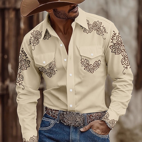 Per uomo Etnico Floreale intricato Fiori Camicia Camicia Western Camicia da cowboy Manica Lunga Vintage Retrò All'aperto Casuale Abbigliamento da lavoro Primavera Autunno Collo ripiegato Due tasche