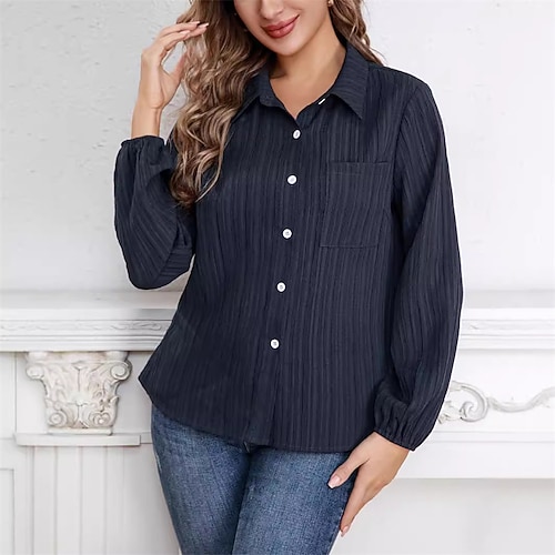 Per donna Camicia Tinta unica Semplice A righe Elegante Vintage Classico Manica Lunga Colletto Polo Top Regolari Lavoro Quotidiano Uscire Tasca Bottoni Blu Autunno Inverno