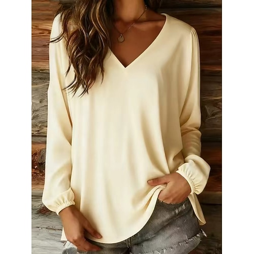 Per donna Blusa Semplice Vintage Elegante Moderno Manica Lunga Scollo a V Top Regolari Quotidiano Ferie Uscire Blu Bianco Giallo Rosa Rosso Estate Primavera Autunno