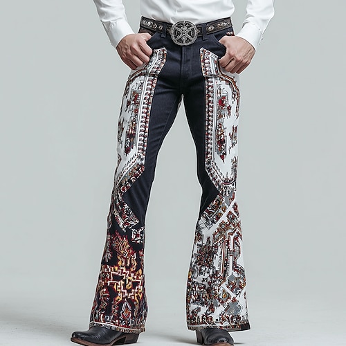 Per uomo Geometrico Etnico Floreale intricato Pantaloni da discoteca Pantaloni a zampa d'elefante anni '60 e '70 Misura del girovita medio Western Vintage Retrò All'aperto Vacanza Tasche Laterali
