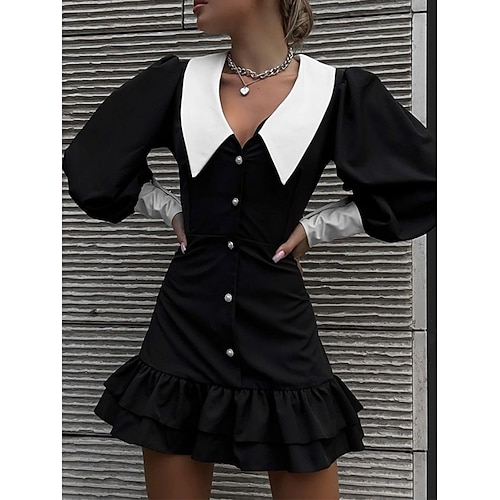 Per donna Mini Abito Abito nero Abito a trapezio Abiti semi formali Vacanza Tè Vestibilità regolare Semplice Manica Lunga Colletto a Camicia Nero Primavera Autunno Inverno