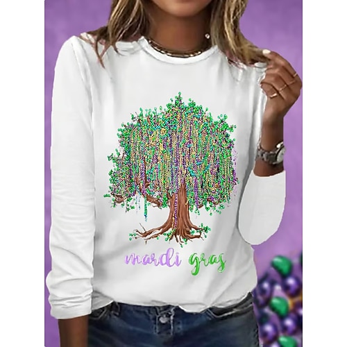 Maglietta da donna Carnival con grafica cartoon geometrica vintage alla moda a maniche lunghe collo tondo ampio stampa verde primavera inverno