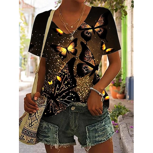 maglietta da donna basic neonamp;stampa astratta brillante manica corta top regolari scollo a V quotidiano fine settimana giallo blu oro azzurro