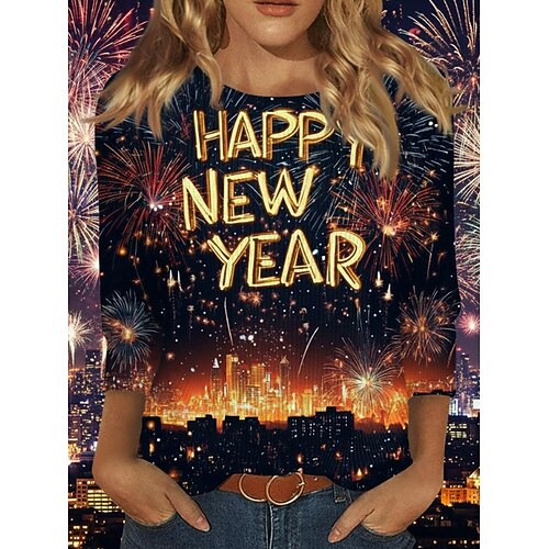 Capodanno Per donna Maglietta Grafico Geometrico Vintage Elegante Classico Manica Lunga Girocollo Top Regolari Quotidiano Weekend Stampato Nero Rosa Oro Primavera Autunno Inverno