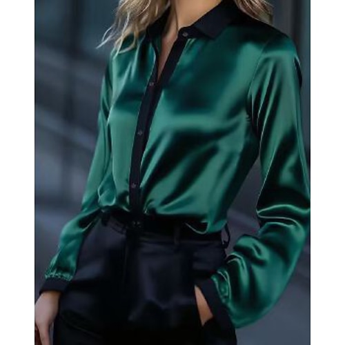Per donna Camicia Blusa Semplice Elegante Manica Lunga Colletto a Camicia Top Regolari Quotidiano Ferie Uscire Patchwork Bottoni Blu Oro Verde Grigio Estate Primavera