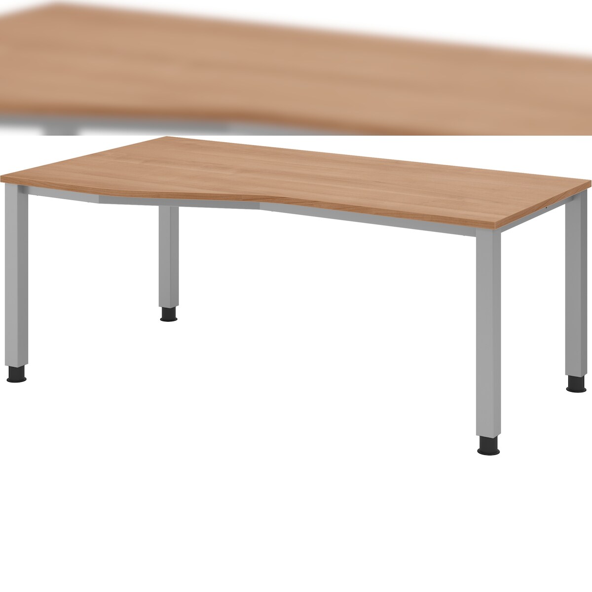 bümö Schreibtisch "Q-Serie" höhenverstellbar, Tischplatte 180 x 100 cm in Nussbaum, Gestell in silber