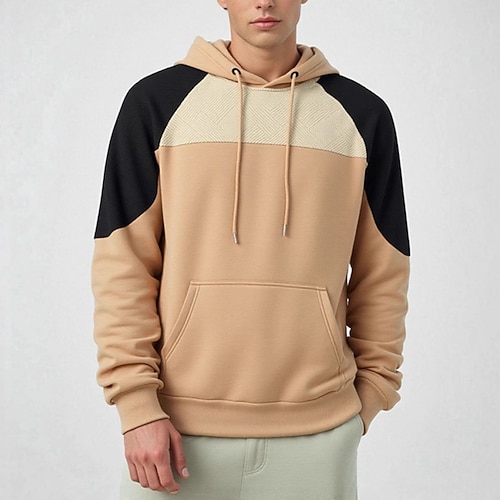 Per uomo Felpa con cappuccio Nero Blu marino Cachi Grigio Con Cappuccio Blocco di colori Patchwork Tasca Sport Outdoor Quotidiano Ferie Poliestere Streetwear Essenziale Casual Autunno Inverno