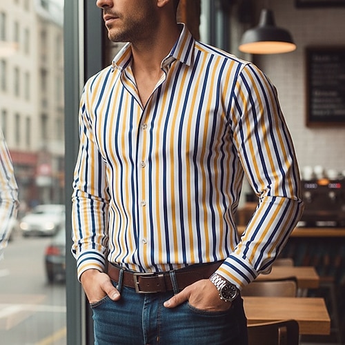 Per uomo Geometrico Blocco di colori Griglia / Plaid Camicia Camicia con Bottoni Camicia casual Manica Lunga Moda Casual Formale Vacanza Abbigliamento Quotidiano Estate Primavera Collo ripiegato