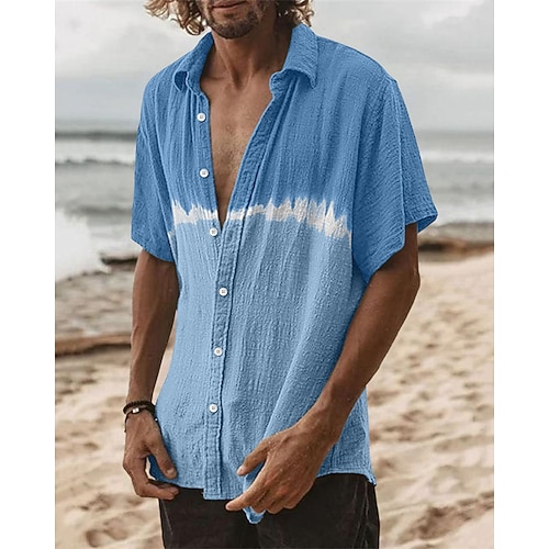 Per uomo Blocco di colori Astratto Fiamma Camicia Camicia con Bottoni Manica Corta Hawaiano Casual Vacanza Abbigliamento quotidiano Weekend Primavera Estate Collo ripiegato Stampato Bottonato Blu