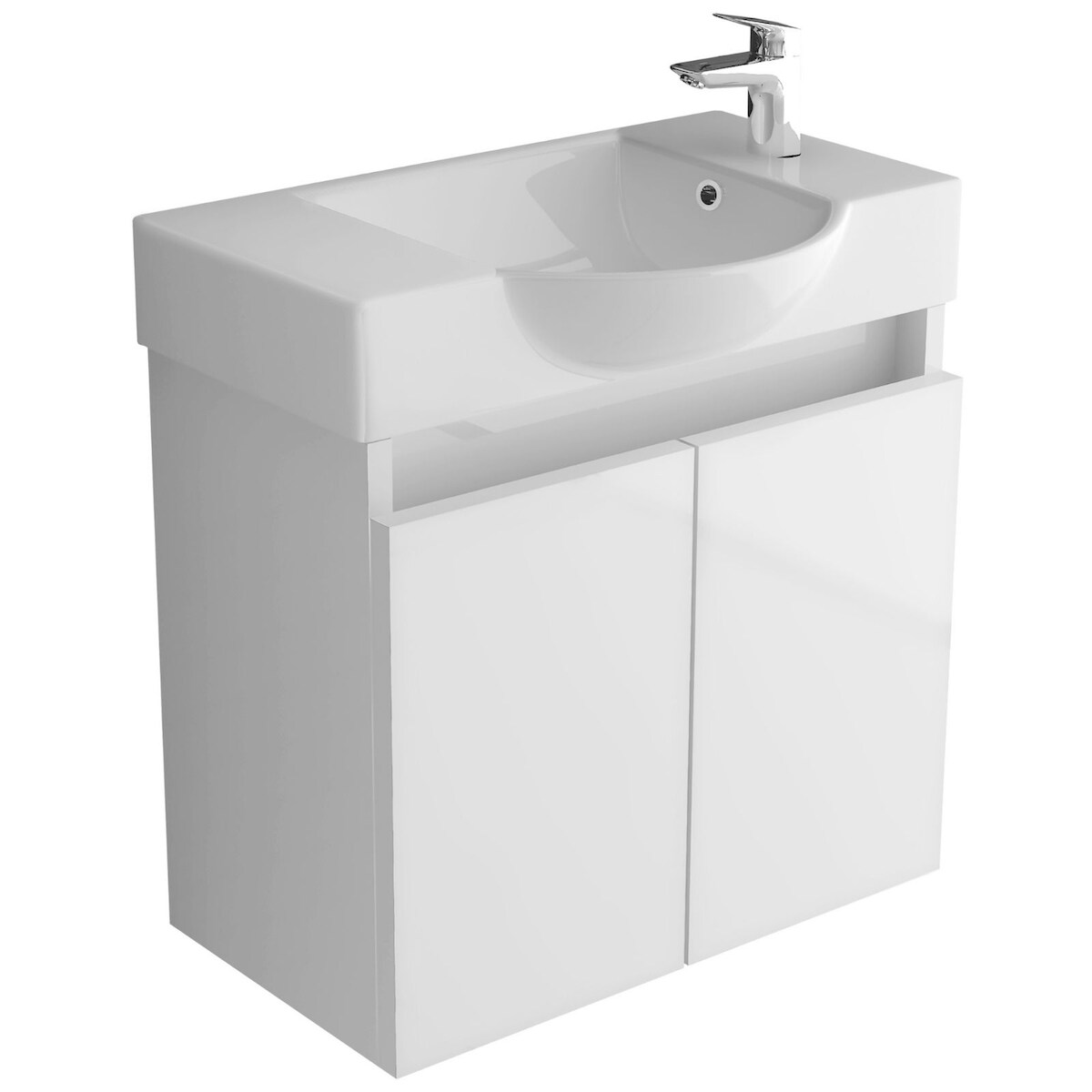 Alpenberger Waschtisch mit Unterschrank | Badmöbel Set für Gäste-WC Badezimmer | Keramik Waschbecken mit Badunterschrank | Soft-Close Tür Vormontiert