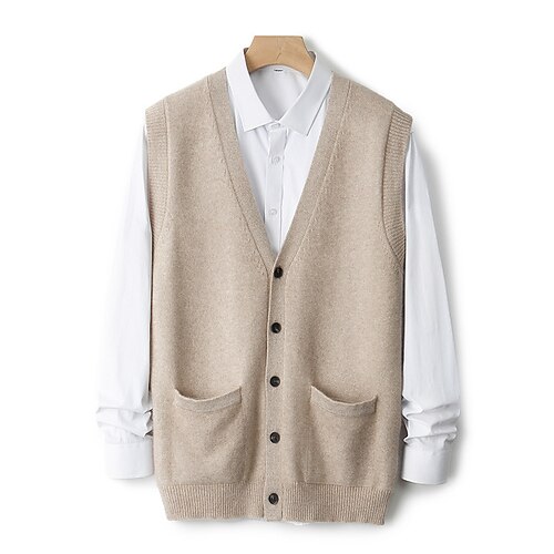 maglione cardigan da uomo in pura lana e cashmere di alta qualità, scollo a V, classico, lavorato a maglia, con tasche e bottoni, tinta unita, morbido, caldo e traspirante.