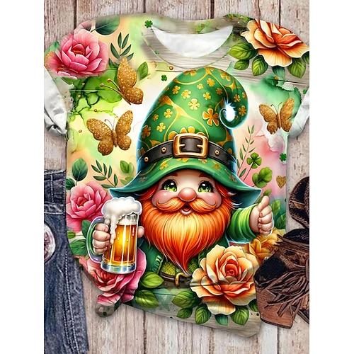 Maglietta da donna per il giorno di San Patrizio casual manica corta colletto rotondo top regolari stampa quotidiana khaki estate