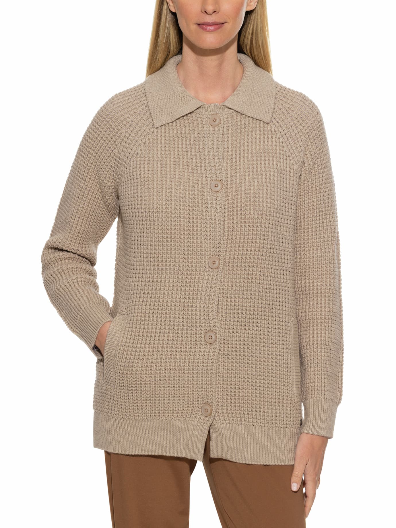 Walbusch Damen Merino-Strickjacke Waffelstruktur Beige