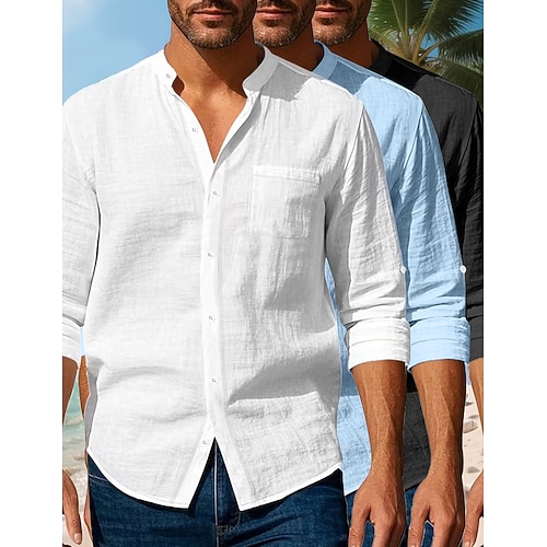 Per uomo Camicia Camicia di lino Camicia Estiva Abbigliamento da spiaggia Camicia con colletto alla coreana Semplice Casuale Quotidiano NeroBiancoBlu Navy NeroBiancoGrigio NeroBluGrigio