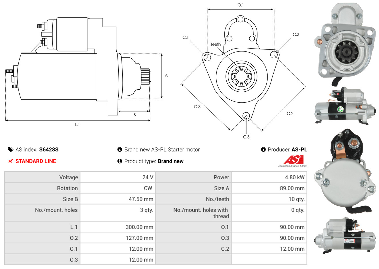 AS-PL Starter S6428S Universal 24V für FIAT 46553723