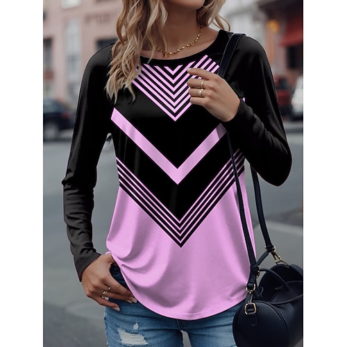 Per donna Maglietta Grafico Geometrico Elegante Casual Manica Lunga Girocollo Top Regolari Quotidiano Weekend Stampato Blu Bianco Rosa Viola Verde Primavera Autunno Inverno