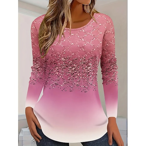 Per donna Maglietta Ombre Grafico Geometrico Vintage Moda Elegante Manica Lunga Girocollo Top Regolari Quotidiano Weekend Stampato Blu Rosa Verde Estate Primavera Autunno