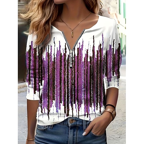 Per donna Maglietta Ombre Grafico Vintage Moda Elegante Manica Lunga Girocollo Top Regolari Quotidiano Cerniera Stampato Blu Rosso Viola Verde Primavera Autunno Inverno