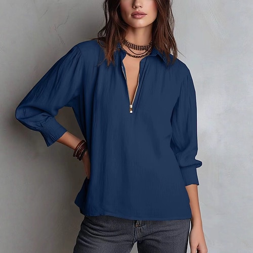 Per donna Blusa Tinta unica Elegante Casual Manica Lunga Girocollo Top Regolari Quotidiano Blu Nero Vino Rosso Fucsia Estate Primavera