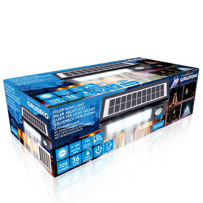Grundig LED Zonne-energie Buitenlamp - 320 Lumen, Zwart, 272 x 125 x 75 mm