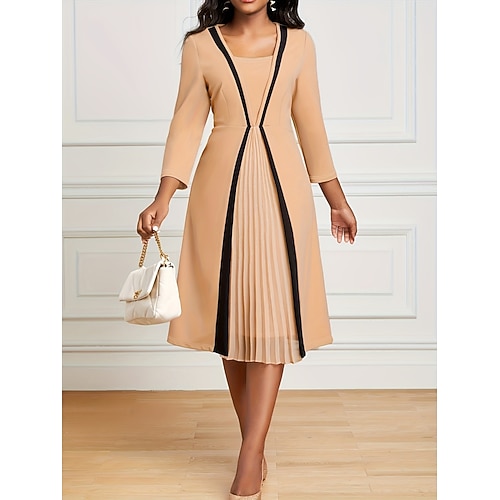 Per donna Abito Midi Abito a trapezio Abito aderente Abiti semi formali Ufficio Vestibilità regolare Semplice Manica 3/4 Girocollo Nero Rosa Rosso Cachi Primavera Autunno