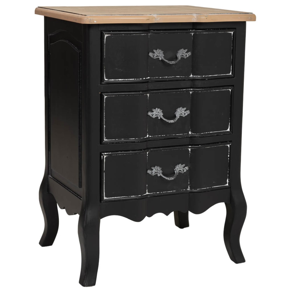 Comodino in legno laccato nero invecchiato con 3 cassetti 50x40x70