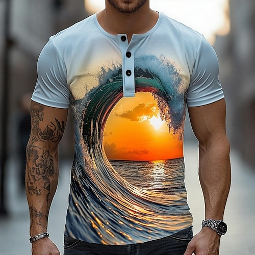 Per uomo Grafico 3D Maglietta Maglia Henley Manica Corta Designer Retrò Vintage Casual Casuale Quotidiano Streetwear Estate Primavera Tutte le stagioni Blu chiaro Henley Maglietta Henley