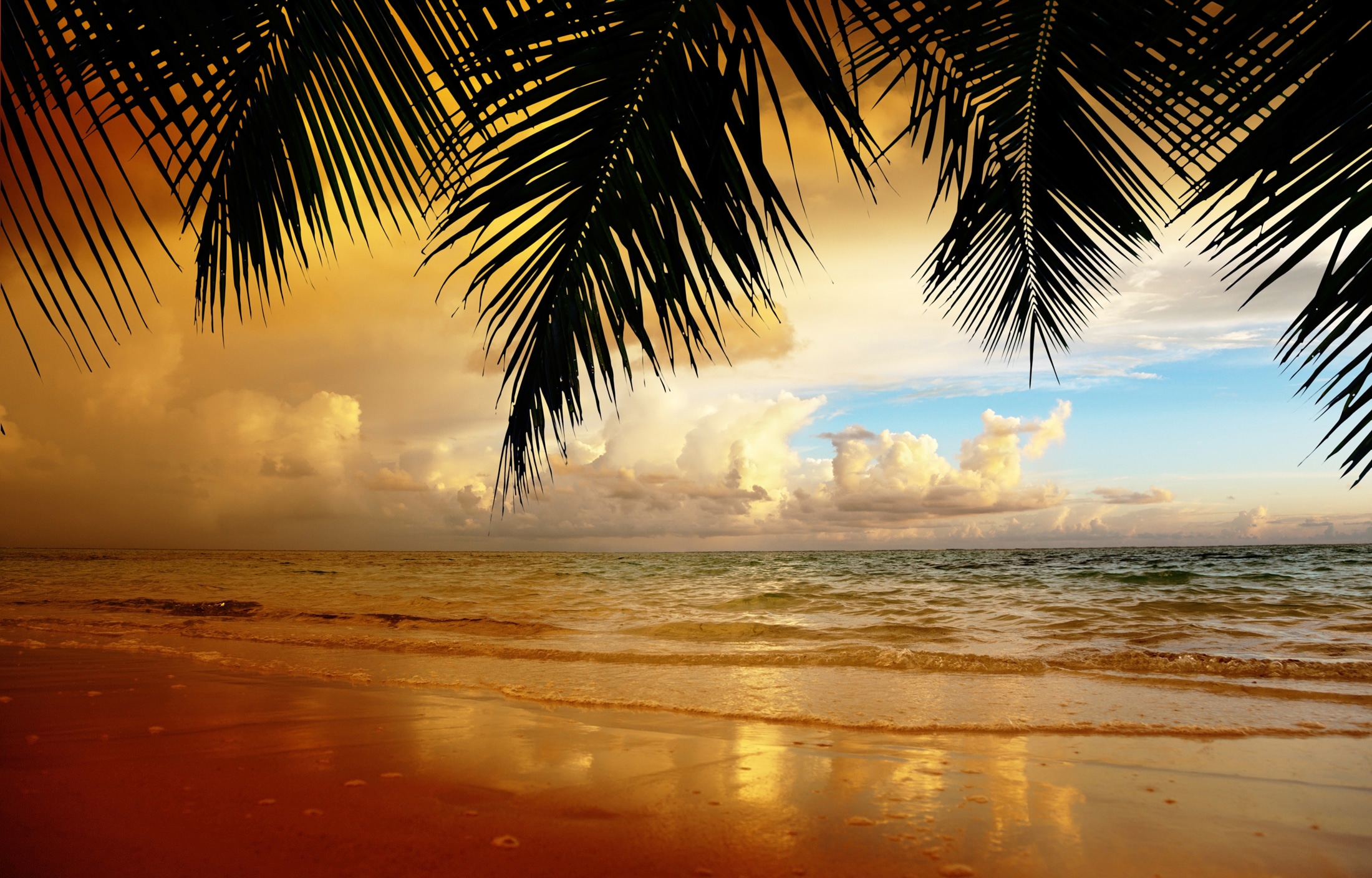 Fototapete PAPERMOON "PALMEN-STRAND-KARIBIK SÜDSEE MEER DÜNEN SONNE OZEAN XXL", bunt, B:5,00m L:2,80m, Vlies, Tapeten