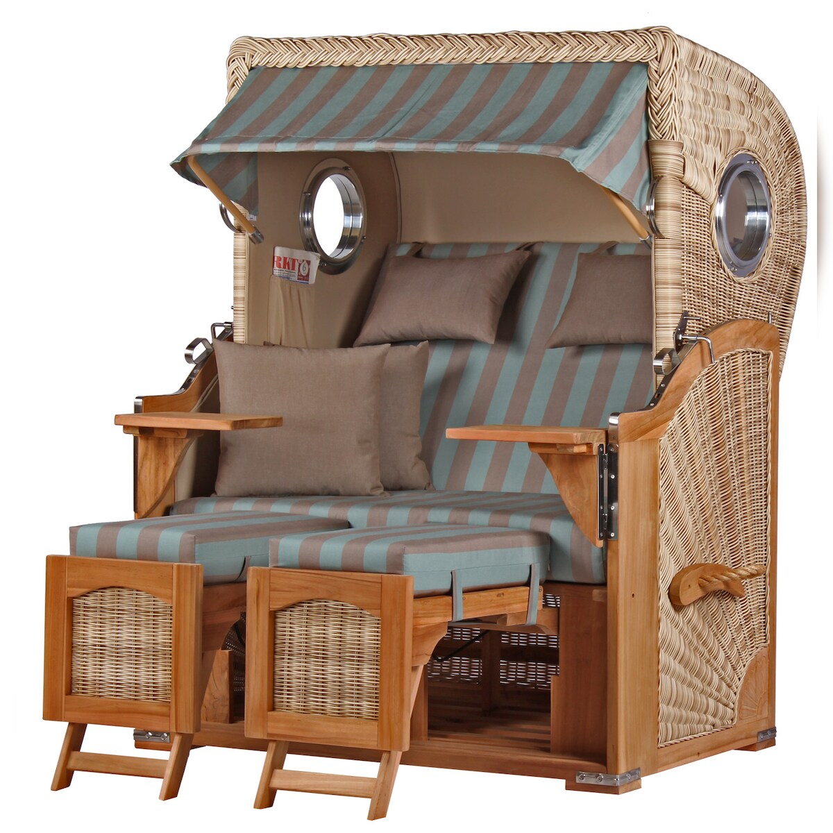 Mr. Deko Strandkorb Komplettset - bene living - Ammersee Teak - PE shell - Modell 520 - inkl. Liftersystem
