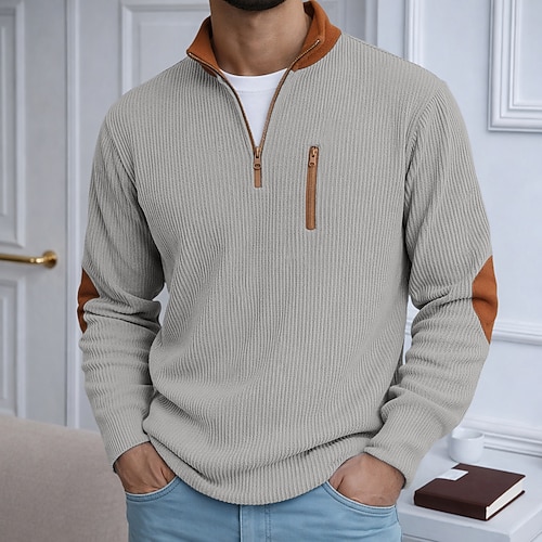 Da uomo Camicia di Velluto a Coste Maglietta Camicia a Maniche Lunghe Manica Lunga Con cerniera Autunno Inverno Autunno Inverno Blocco di colori Quotidiano Testurizzato Casual Con zip Oversize Ampio