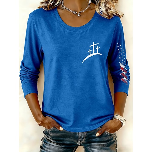 Per donna Maglietta Grafico Vintage Elegante Moderno Manica Lunga Girocollo Top Regolari Quotidiano Weekend Stampato Blu Bianco Rosso Grigio Autunno Inverno