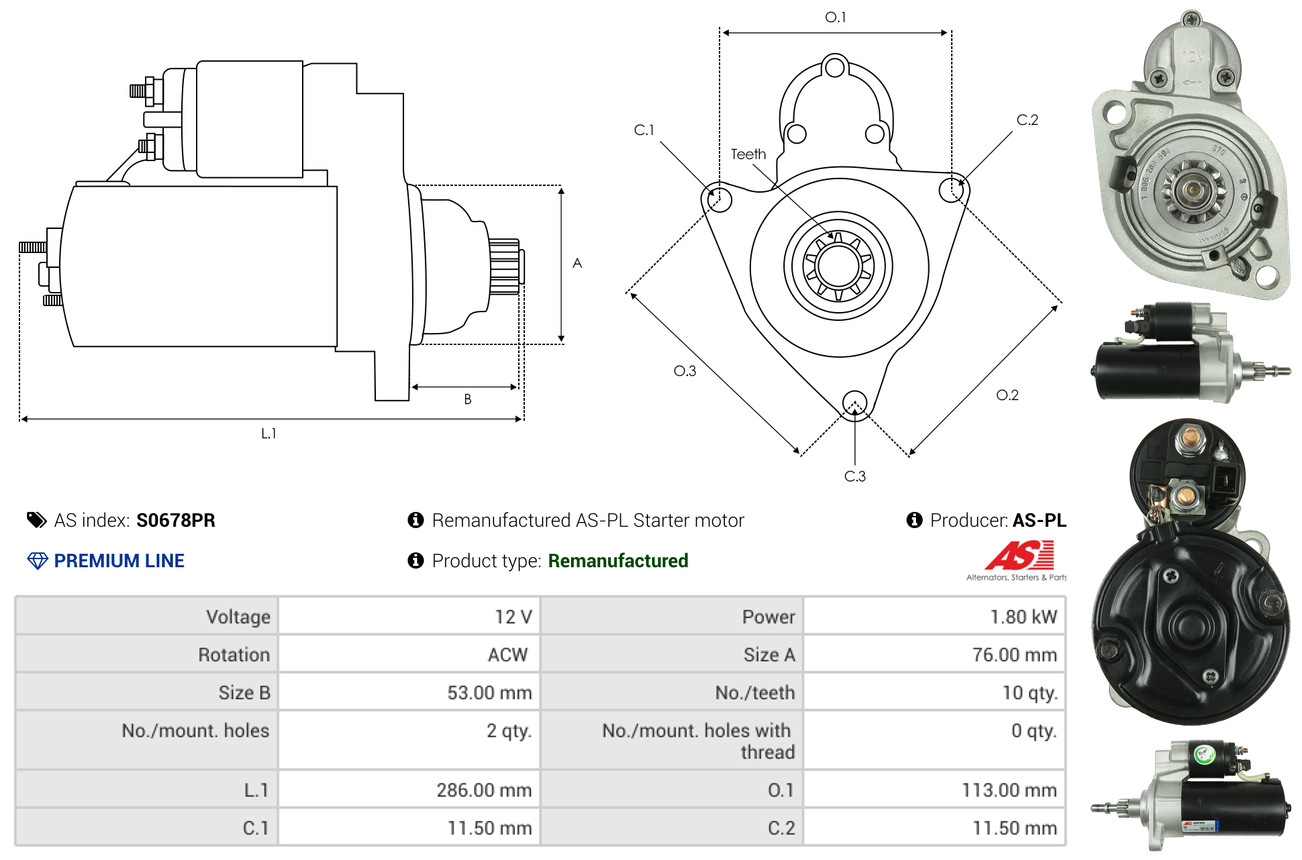 AS-PL Starter S0678PR 12V für VW FORD 2A911023G 7203210 95VW-11000-CA