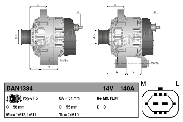 DENSO Generator DAN1334 14V 140A für OPEL 13585666 1202473 1202374