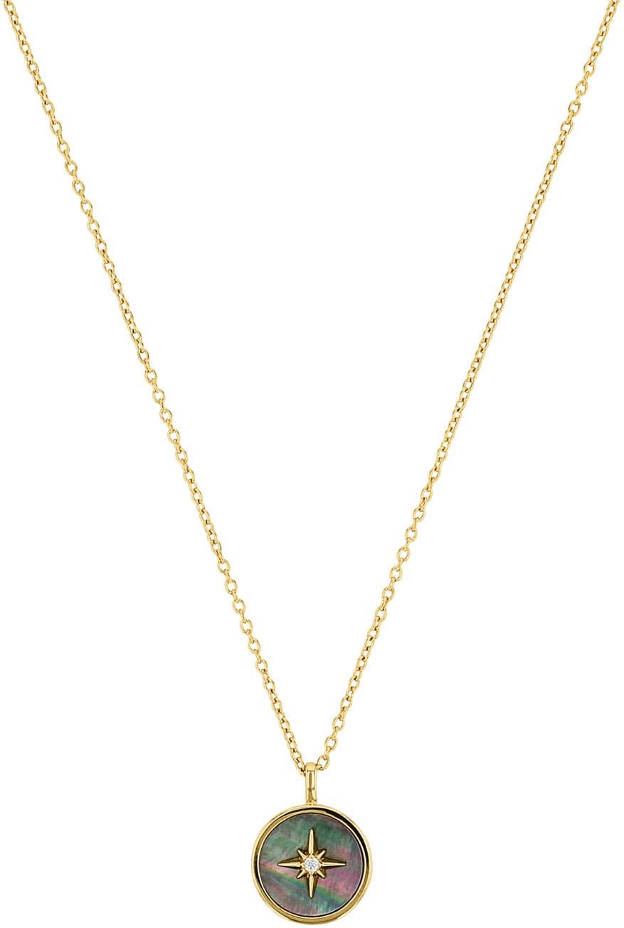 Kette mit Anhänger S.OLIVER "Stern, 2038959", grün (gelbgoldfarben, weiß, grün, schwarz), Halsketten, Damen, Silber 925 (Sterlingsilber), L: 45cm, mit Zirkonia (synth.) - mit Perlmutt