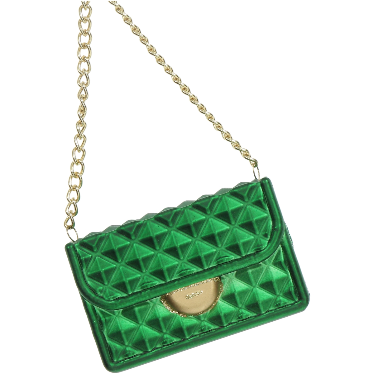 Christbaumschmuck Kunststoff 7,6cm Handtasche Figur Handbemalt & mit Glitzer Weihnachtsbaum Anhänger Weihnachten Weihnachtsbaumschmuck Tasche Grün