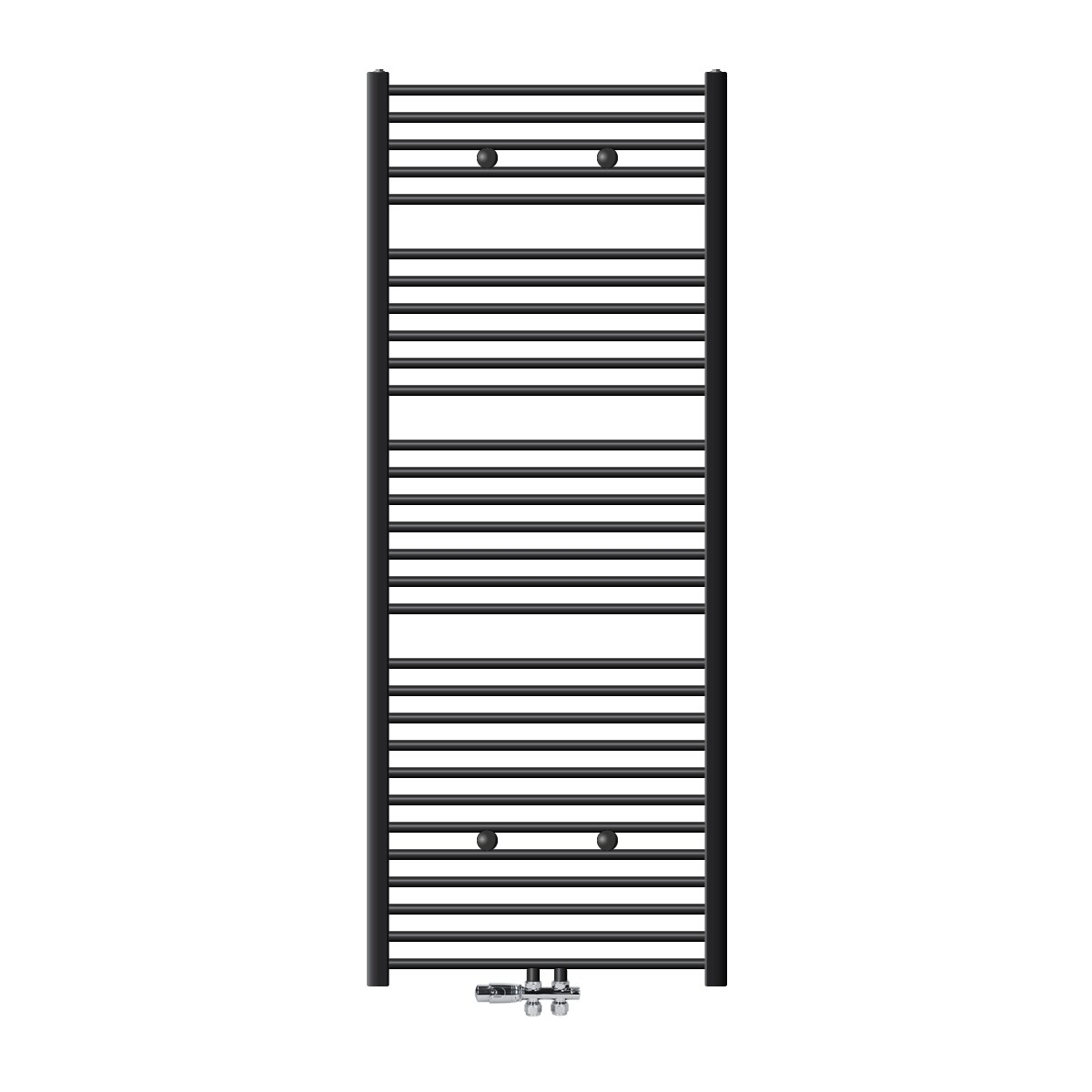 LuxeBath ECD Germany Badheizkörper 750x1800 mm Anthrazit | Mittelanschluss, gerade, Thermostat, Anschlussgarnitur Durchgang Boden